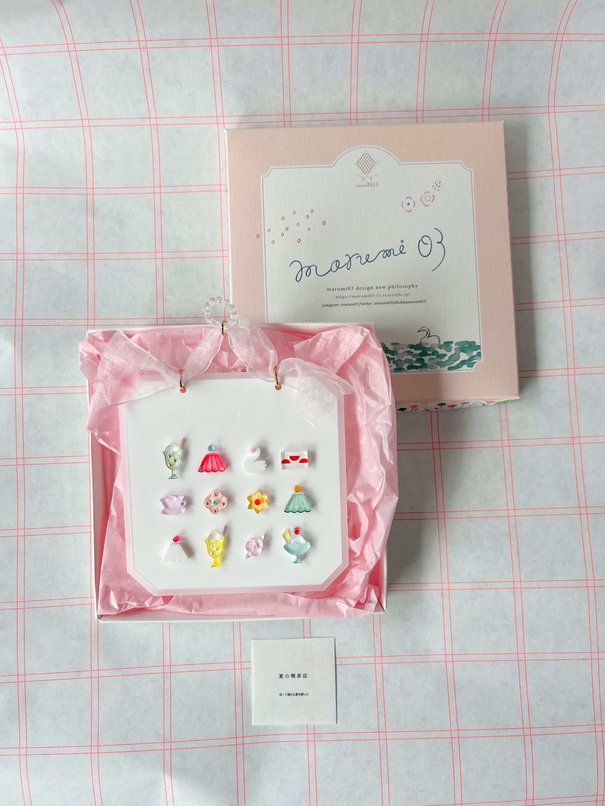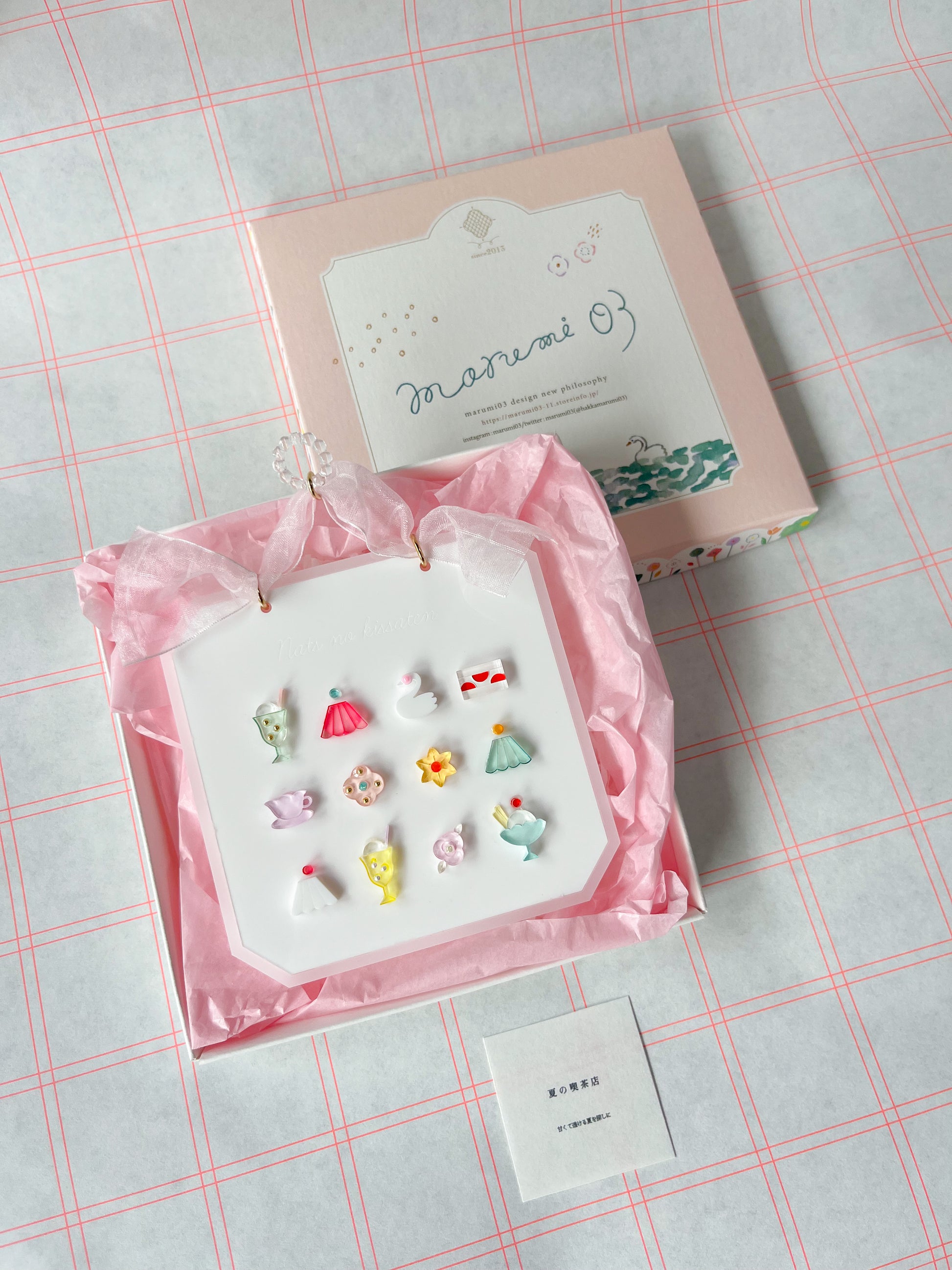 走進懷舊喫茶店的溫柔氛圍。這牆面裝飾,就像一個靜謐的午後,配上一杯蘇打冰淇淋,或者一塊草莓蛋糕。甜美、透明、幻與懷舊。以壓克力打造輕盈通透的設計,並附上原創設計盒。